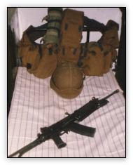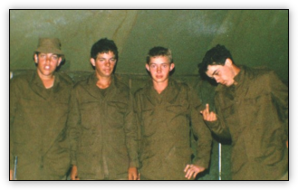 Within two weeks we were issued with our rifles, the R4, a 5.56 mm ARM which was based on the Israeli Galil (see equipment page) The day we were issued with the R4, the guys from the 1987 intake were busy handing in their's. They had just come down from the border where they had been subjected to some of the heaviest battles to date, and they looked it. These guys looked wild and we were ordered to stay well clear of them. It's obvious why. The stories they had to tell were enough to give us all the shits as they were involved in major battles at Tumpo a few days earlier, where quite a few 1 SAI guys were killed in action. The oumanne were in camp for a day or two before being sent on pass and during that time we heard a lot about the MiG menace that they were subjected to.