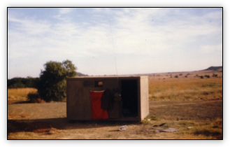When we got to Bloemfontein, which is about 1000 Kms north of Cape Town, we were ordered to climb into the waiting SAMILs (South African Military trucks) and taken to Tempe, the military base that housed 1 South African Infantry Battalion, 1 Parachute Battalion, 1 Special Services Battalion and 3 Military Hospital. Once inside our unit's perimeter we were divided into the different platoons and taken to our bungalows. I was allocated to Oscar Company, platoon 13 and our bungalow was down by the main gate opposite those of Charlie Company. Our platoon Corporal was Corporal Cronje, and he was very relaxed in comparison to the Corporals in charge of the other platoons. Lucky for us. That evening we were taken up to the stores to get some kit and bedding and we then had to carry it back to our bungalows, which was about half a kilometer away!!