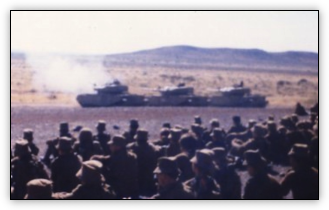 At Lohatla we took part in a number of spectacular mock-attacks with live ammunition, involving just about every active unit that was there at the time. It usually began with a number of jets flying overhead to bomb the objective (a poor little hill) Then the artillery opened up softening up the target some more. One by one the units moved in on the objective until it was the infantry's turn to move in and clean up. We were parked up on a hill overlooking the scene and I remember it being quite a radical sight with all the tracer fire bouncing around.